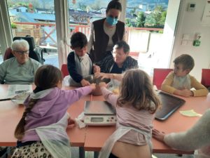 Oraino, momentu goxo bat pasatu dugu. Haurrak eta aitatxi eta amatxiak lotura onak eraikitzen ari dira sukaldaritzaren inguruan.