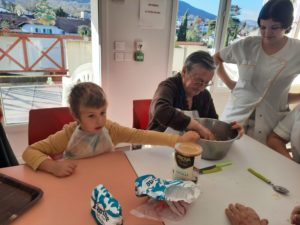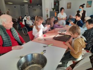 Deuxième atelier cuisine à la maison de retraite Adina. Cette fois-ci, nous avons réalisé des sablés de Noël avec les résidents que nous dégusterons la semaine prochaine lors de notre représentation des chants de Noël accompagnés de tous les enfants de maternelle ainsi que des CP.