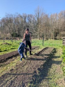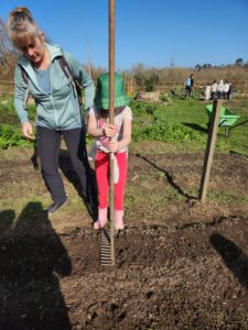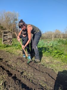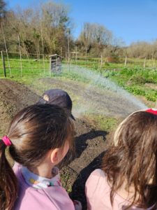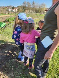 Malgré le changement radical du paysage les enfants reconnaissent les plans de cassis, certaines aromatiques et se souviennent de l’utilité du paillage ou autres peaux de moutons destinés à garder le sol meuble et humide.