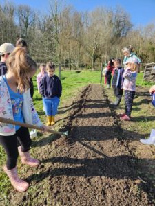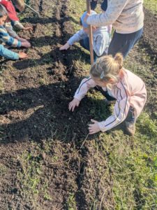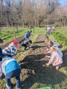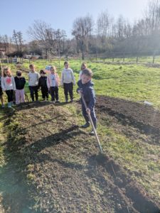 Jeudi 26 février, les GS et les CP se sont rendus à pied au jardin municipal investis d’une mission : planter des petits pois et des fèves que nous reviendrons récolter en juin.