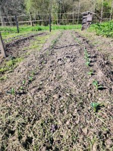 Notre visite est aussi l’occasion de revoir le potager en fin d’hiver, très différent de juin dernier.